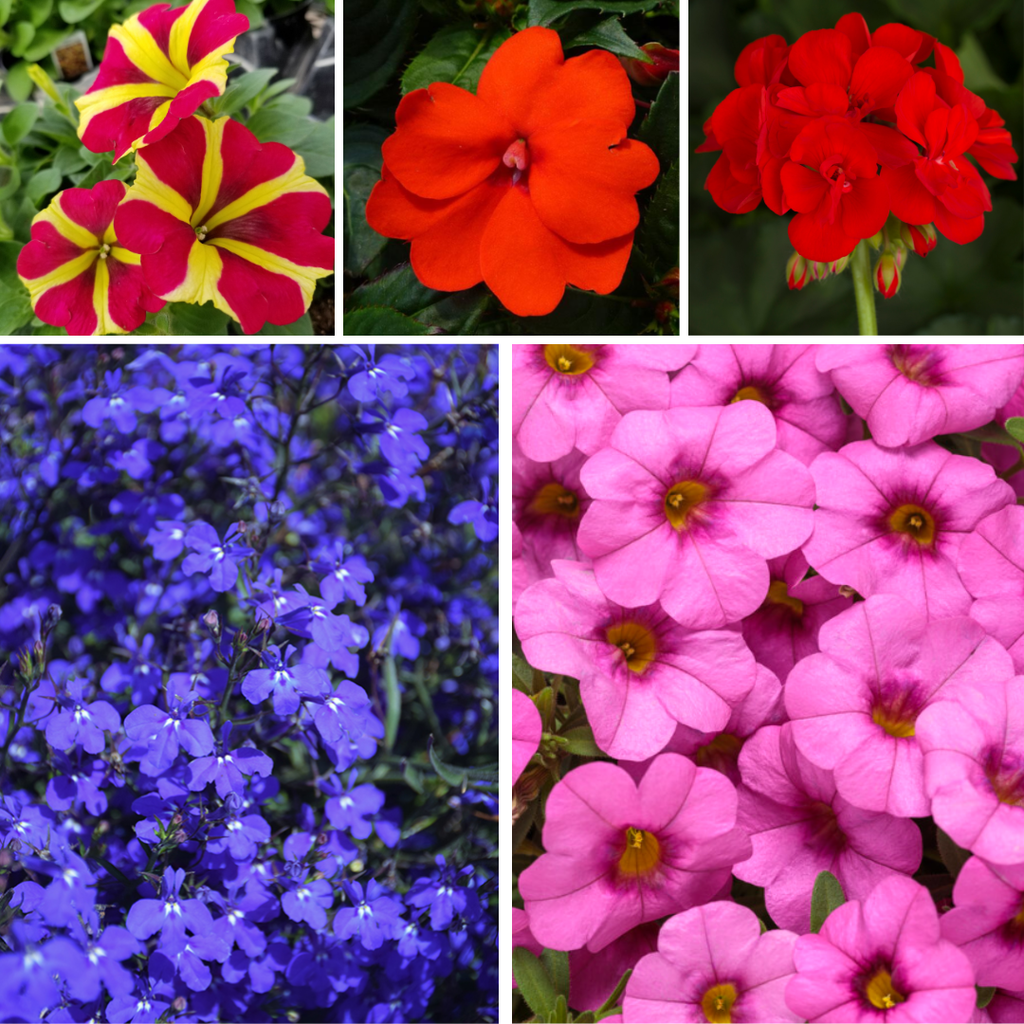 **Please note: These items are grown to be ready around the first of May. All items listed are available to purchase, but size and bloom quantity will vary some based on how much sun we have had this season and the specific varieties in the combo. Please call with any questions you may have.